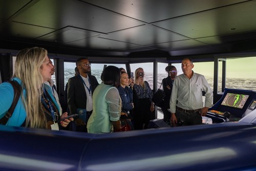 Teresa Choupina, da divisão da Formação da APDL, apresentou a capacitação no contexto marítimo-portuário e o núcleo de simulação da APDL, Edmundo Monteiro, da Faculdade de Ciências e Tecnologia da Universidade de Coimbra, falou sobre a cibersegurança no transporte marítimo, e Filipe Duarte com Mário Marques abordaram o tema Navios autónomos e cibersegurança.