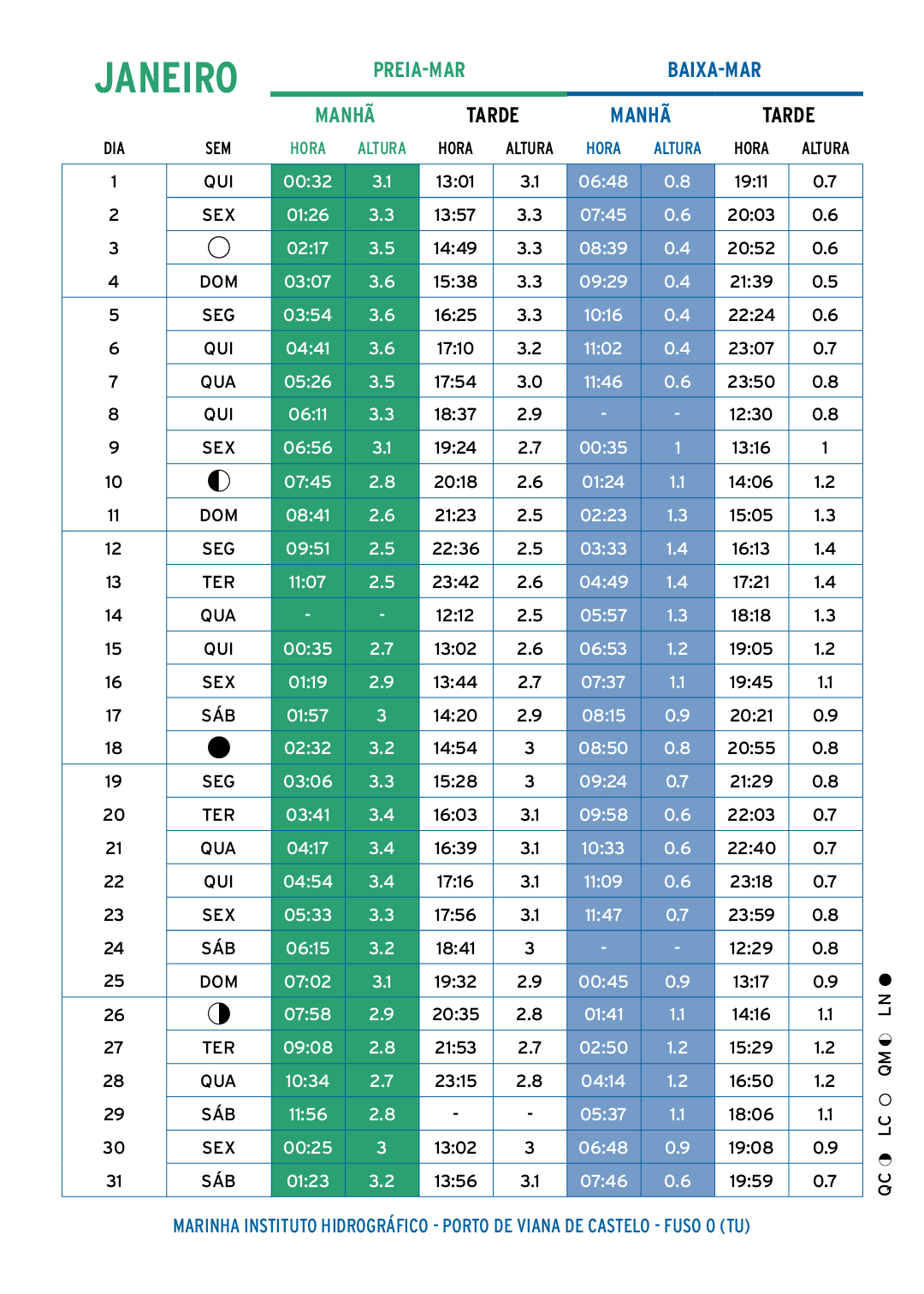 Esta publicação não substitui as publicações oficiais do Instituto Hidrográfico que declina qualquer responsabilidade decorrente da utilização dos elementos de marés transcritos.